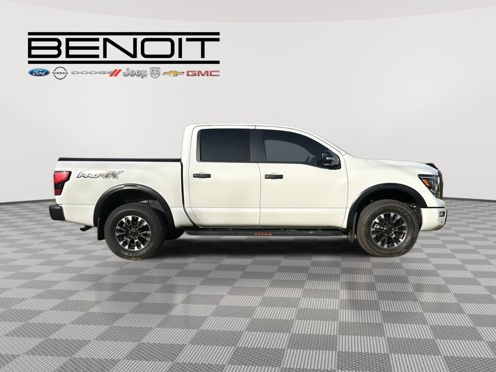 2024 Nissan Titan PRO-4X Glacier White with Black Interior.
