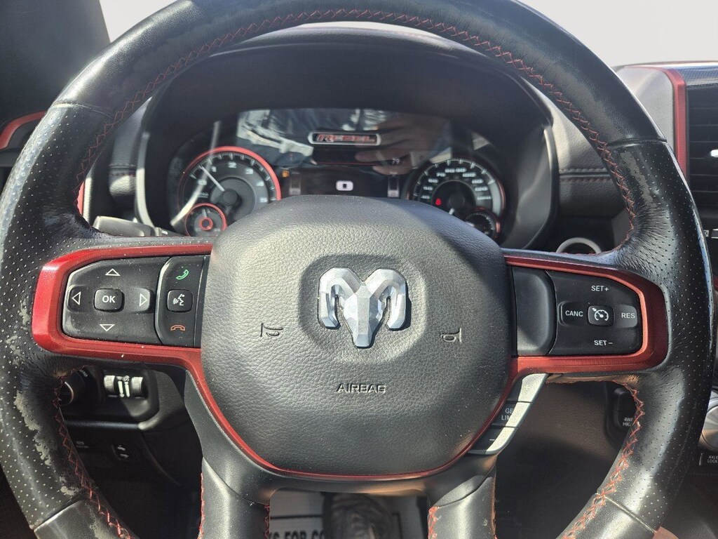 2019 Ram 1500 Rebel Bright White Clearcoat with Red/Black Interior.